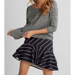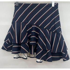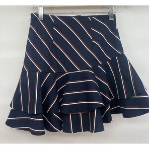 Express Navy Tiered Ruffle Skirt Stripes Size 0 Mini Skirt Schoolgirl Waist 26”