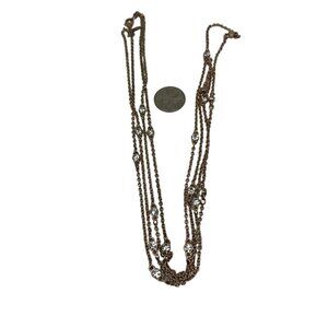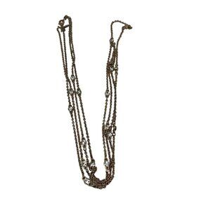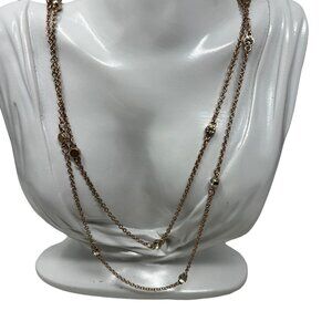 Express Necklace Long Rose Gold Tone Two Strand Rhinestone Stations