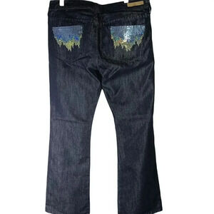 Express New Stella Boot Leg Embellished Denim Blue Waxed Jeans Sequins Size 12