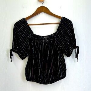 Express - Off The Shoulder Rainbow Stripe Black Crop Top Size Small