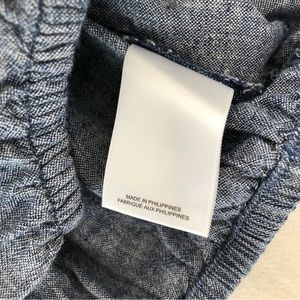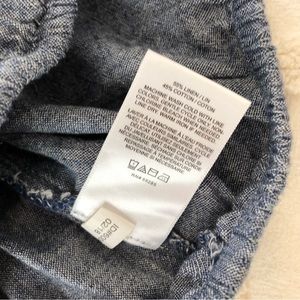 Adorable off the shoulder top with ruffles! Cropped fit looks great with skirts for a boho vibe. Linen cotton blend chambray fabric. Elastic at top and bottom edges. Worn once, in excellent like-new condition.