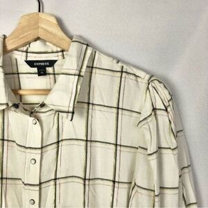 Express Off White Plaid Puff Long Sleeve Button Down Flannel