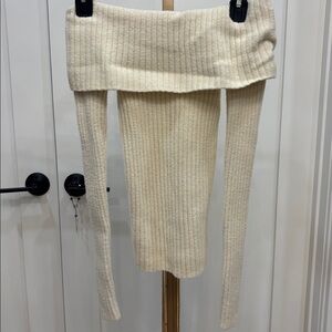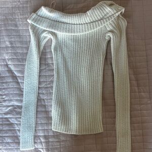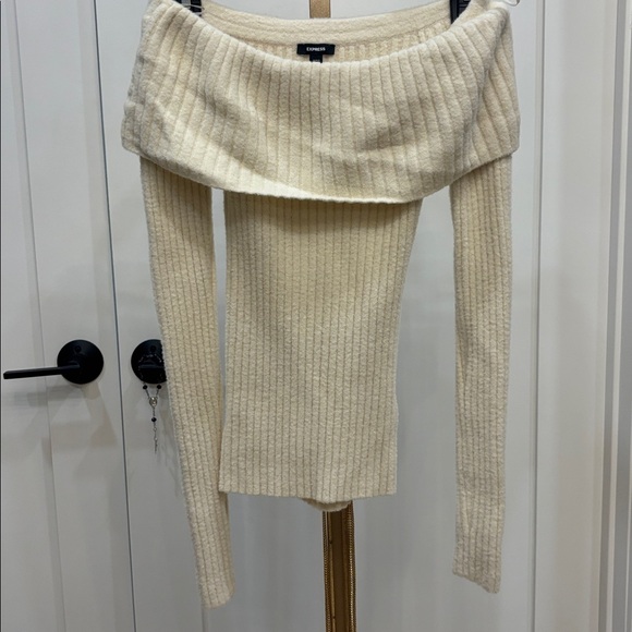 Express Off-Shoulder Ribbed Sweater in Cream