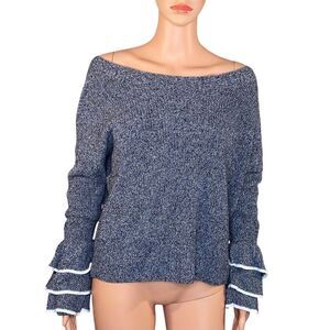 Express Off-Shoulder Sweater w Ruffled Sleeves Womens Size Medium Gray and White