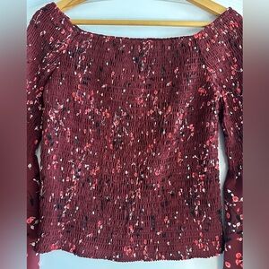 Express Off-the-Shoulder Boho Floral Bell Sleeve Top size medium in excellent condition. Burgundy color with ruched bodice.
