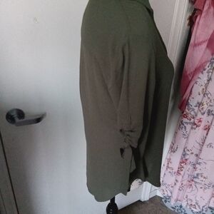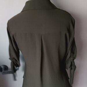 Express Olive Flowy Tie-Sleeve Blouse