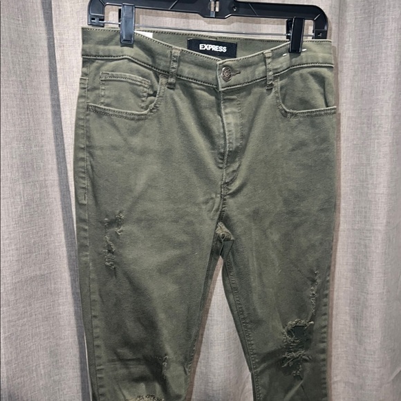 Express Olive Green Distressed Jeans