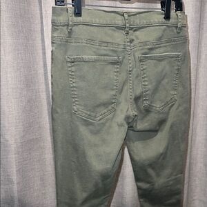Stylish olive green jeans with a distressed look. Perfect for casual outings.