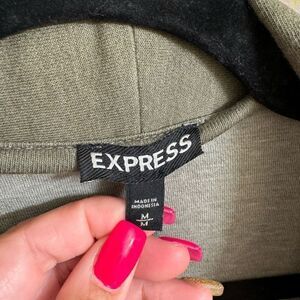 Express Olive Green Gray Stretchy Open Collared Cardigan Sweater M