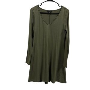 Express Olive Green Long Sleeve V Neck Stretch Tshirt Dress Womens Medium