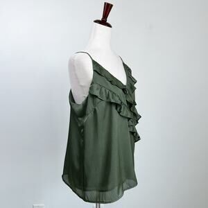 Express Olive Green Polka Dot Satin Ruffle V-Neck Camisole