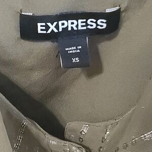 Elevate your style with this chic olive green ruffle top from Express. Perfect for any occasion, this top features delicate ruffles and a flattering fit.