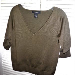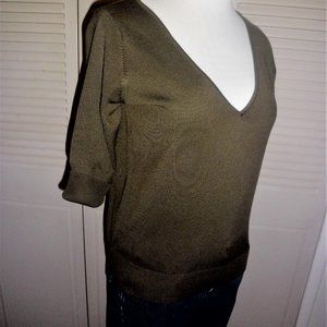 EXPRESS Olive Green SILK short Sleeve Deep V Neck Sweater ..Picking on sleeve (Quality)