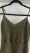 Elegant olive mini dress with ruffle accents. Features adjustable straps.