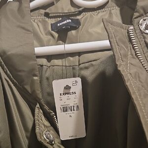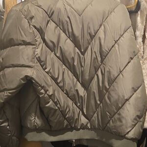 Chic olive puffer jacket by Express. Features quilted design. Ideal for cool weather.