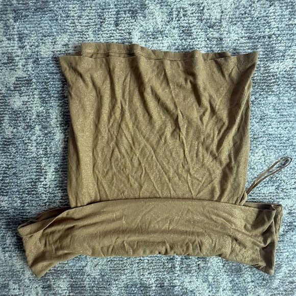 Express Olive-Tan Ribbed Strapless Tube Top