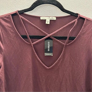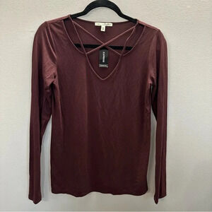 Express One Eleven Black and Maroon Criss Cross Long Sleeve Set of 2 Tops Sz XS