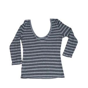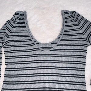 Express One Eleven Gray & Black Striped Ribbed Scoopneck Top Medium Women’s