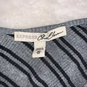 Express One Eleven gray & black striped ribbed top. In excellent condition! Scoop neckline. Fitted 3/4 sleeves. Scoop back. Slightly cropped. Ribbed, fitted material. Dark gray with small black stripes. Size medium.