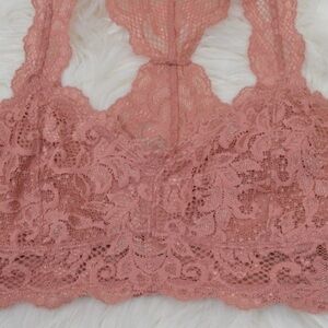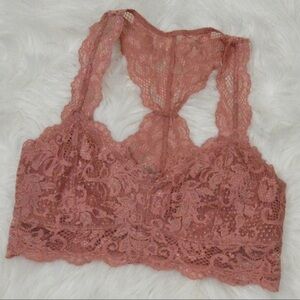 Express One Eleven Racerback Lace Bralette, Small - Dusty Rose color with metallic threading
