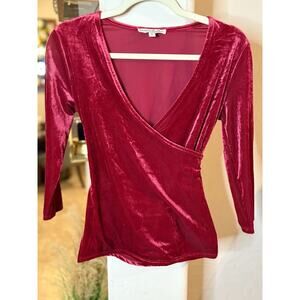 🍀🍀Express One Eleven Red Faux Wrap Velvet Red Blouse Size XS 0-2