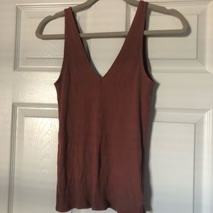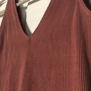 This tank top is very flattering with a double V at the front and back. Great quality from Express and made from a stretchy ribbed material.