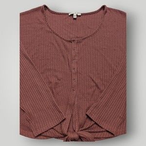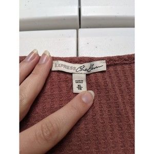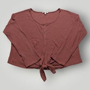 Express One Eleven Women's XL Rust Red Cropped Tie Bottom Button Up Knit Cardigan Sweater