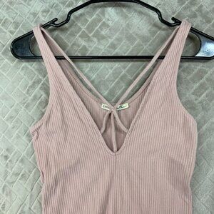 Express One Eleven Womens XS Bodysuit One Piece Pink Ribbed V Neck Sleeveless. No stains or holes.