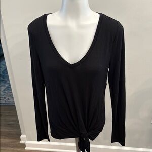 Express One Eleven XS Black V-Neck Tie-Front Women's Top