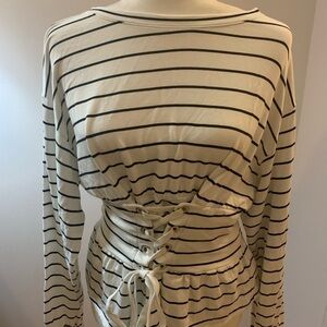 This features a cinched in waistline with ties..long sleeves.