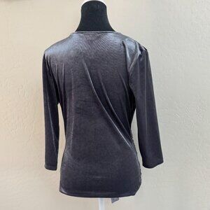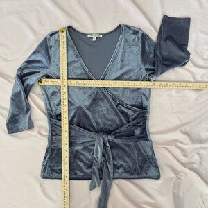 Express One-Eleven Velvet Knit Faux Wrap Top - Silver - Size L