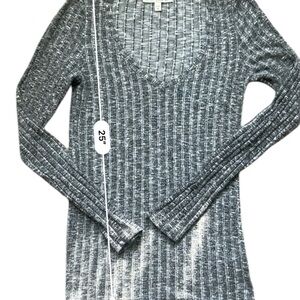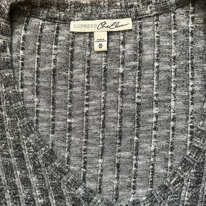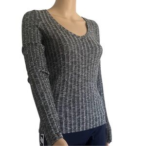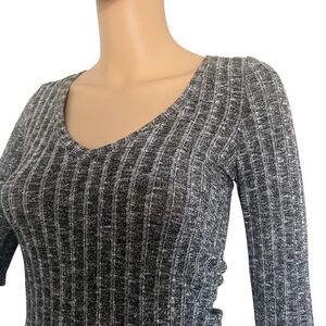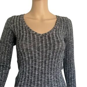 Express OneEleven tight knit top gray white marble V neck long sleeves Women M