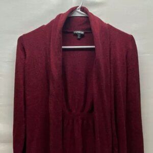 Express Open Cardigan Sweater Women's Medium Maroon/Deep Red and Black Heathered Ladies Long Sleeve Blouse.