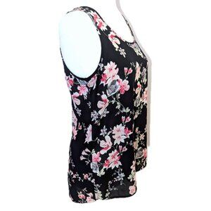 Express | Open Ladder-Back Panels Floral Sleeveless Top Black | Size Small