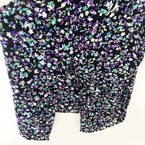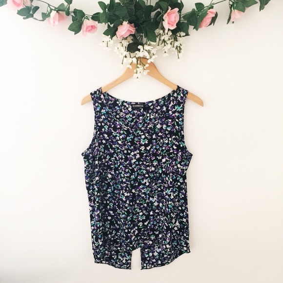 Express Open-Back Tank in Black with Floral Print. Slit in back, most would prefer to wear with camisole underneath this piece. Very lightweight fabric! In great condition!