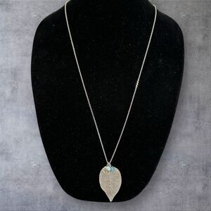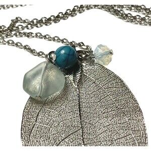 Express Openwork Filigree Leaf Pendant 34" Necklace Silver Tone Chain Beaded