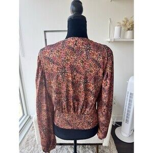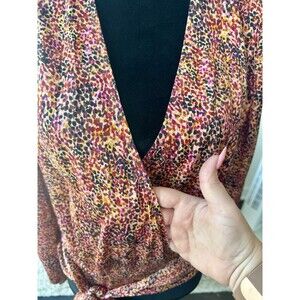 Express Orange Multicolor Satin Wrap Front V-Neck Blouse Size Large NEW!