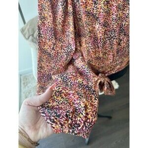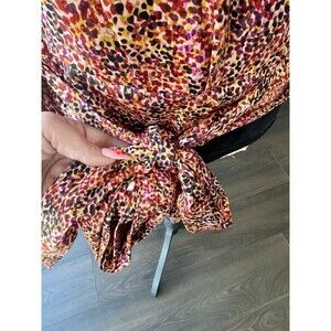 This Express Orange Multicolor Satin Wrap Front V-Neck Blouse in size Large is a stylish and versatile addition to any wardrobe. Made from a lightweight and stretchy polyester and spandex blend, it features a polka dot pattern and a flattering V-neckline with a bow accent. The pullover closure, long sleeves, and collarless design make it suitable for various occasions, from casual outings to business meetings or parties. Easy to care for with machine washable instructions, this blouse is perfect for year-round wear with its vibrant multicolor design.