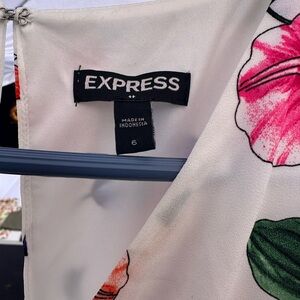 This vibrant sundress from Express features a captivating floral pattern in shades of orange and pink, set against a light background. Designed with a flattering V-neckline and flutter short sleeves, it offers a breezy and stylish look perfect for casual or resort wear. The midi length adds a touch of elegance, making it an ideal choice for warm weather outings.