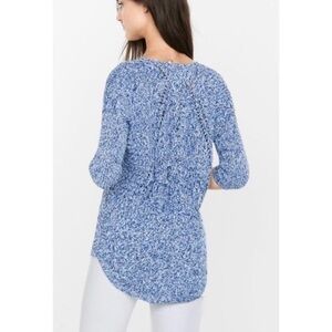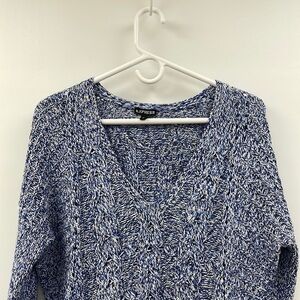 Express Oversized Cable Knit Slouchy 3/4 Sleeve V-Neck Sweater Blue White XS