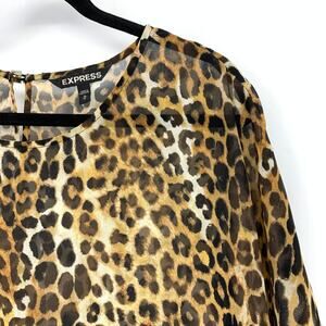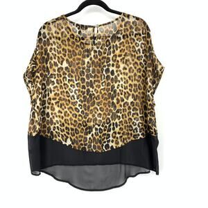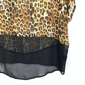 Express Oversized Sheer Boxy Short Sleeve Top Womens Size M Leopard Print Black