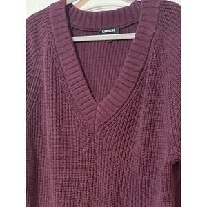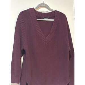 Express Oversized Sweater Women's XS V-neck Knit Maroon Baggy Tunic