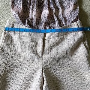 Beautiful capris by Express in a muted light peachy/ pink shade with gold threading throughout. They are exceptionally lined and have side pockets. Look fantastic with any top.