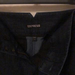Express Tailored Short Pants Ultra Soft Stretch Fabric Super Flattering Comfortable Fit Hidden Hook & BarClosure Zip Fly Belt Loop. 99 Percent Spandex, 1 Percent .Cotton Color Blue Denim No Stains No Odor