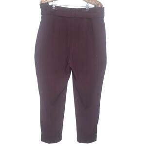 Express Pants Maroon Paperbag Tie Waist Ankle Crop High Rise Work Office 18 Long