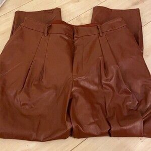 Express Pants Red Faux Leather Straight Leg High Rise Trousers Medium Belted