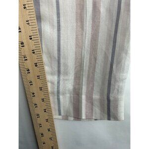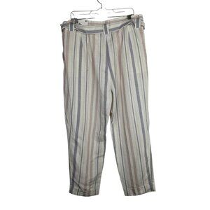 These Express Pants are a stylish addition to any woman's wardrobe. The high-rise ankle pants feature a striped pattern in white, pink, and gray, making them perfect for casual occasions during the summer, fall, or spring seasons. Made from a blend of polyester, linen, and cotton, these pants are machine washable for easy care. With a flat front and tapered leg style, these pants offer a flattering fit for a size 16 with a waist size of 36 inches. The pants also come with pockets for added convenience.