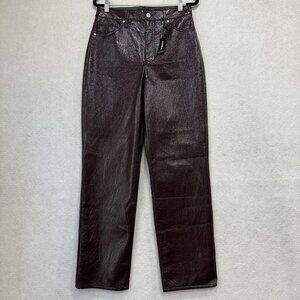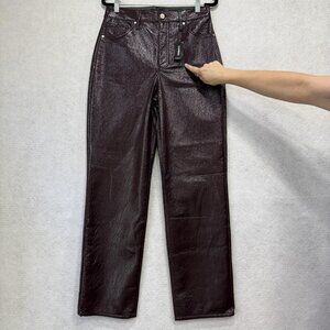 Express Pants Womens 6R Burgundy Modern Straight Super High Rise Faux Leather
