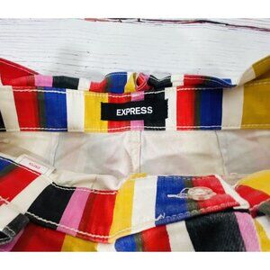 Express Jean Shorts Extreme High Rise Paperbag Waist Striped Y2K Retro Shortie 6