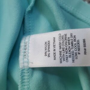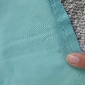 beautiful pastel teal camisole. smooth to the touch. adjustable straps. small dirt mark on the back. I have not tried cleaning that yet. will update listing if removed